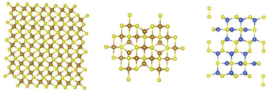 The activities on the rim and edges sites translate to the layered TMS, which in turn translate into the CO2 reduction reactions. For the MoS2-, TiS2-, and WS2-based electrocatalysts, the edge sites are far more reactive than the basal planes. However, there has been recent research which has shown creating sulfur deficiencies on the surfaces/basal planes produces reactivity [81,82,83]. The non-layered TMS typically have the metal located on the surfaces of the crystalline phase and not blocked by the other atoms [84,85,86]. Figure 3 shows examples of Fe3S4, Fe7S8, and CuS crystal structures, which illustrate the availability of the metal ions for reaction [87,88,89].