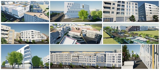 Few city models based on professional BIM are described in the literature. For instance, in [12], the authors linked an existing BIM to generic simulation models of construction activities implemented as script game components within a game engine, but only one BIM was used that modeled a sample house. A meta-analysis of the work available in the field of BIM’s application can be found in [13]. However, as underlined in [14], there is limited literature about virtual reality technologies and BIM in AEC: the most-common uses of VR are safety training [15], project schedule control, collaborative projects [16], design issues, and construction site layout. However, to our knowledge, no publication has explained the necessary steps required for the building of a 3D city model based on professional BIM files.