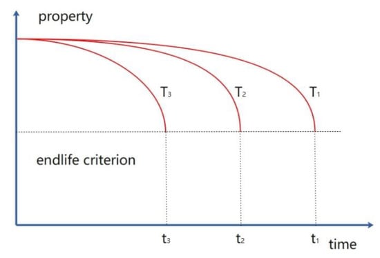 However, it is not accurate enough to detect the aging process of the material with a single experiment, so it is necessary to learn more about the change curve of material properties versus time under several experimental conditions, as shown in Figure 3, and use it as a foundation for material life speculation.