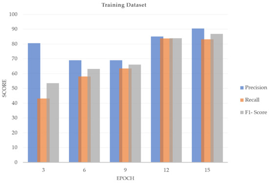 F-score (F1) is a crucial need for simulating the situation with the highest probability of obtaining the correct answer and explicitly demonstrating the algorithm’s ability. Moreover, F1-score is defined as a harmonic mean of sensitivity and precision. The F value is calculated in Equation (12).