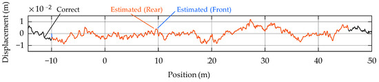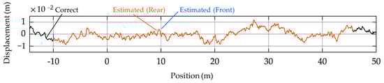 Figure A4 shows the differences between correct and estimated road unevenness functions. According to these figures, the estimation errors are less than 0.1 mm in most positions.