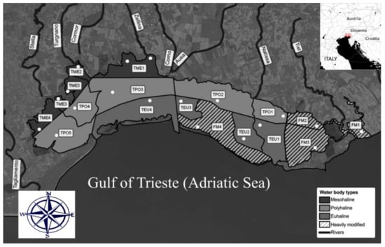 The dataset (partial) presented in this study is openly available at the following website: https://www.dati.friuliveneziagiulia.it/Ambiente/Acqua-Acque-di-classificazione-Superficiali-marino/qcsf-bwk5 (accessed on 16 January 2023). Further requests should be submitted to: urp@arpa.fvg.it and to the corresponding author.