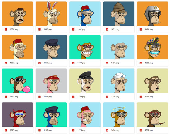 - Mak, S. Nft-Classifier. Available online: https://www.kaggle.com/datasets/shaunmak/nft-classifier (accessed on 19 November 2022).