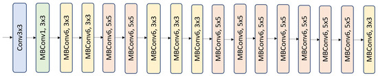The architecture of a convolutional neural network and the scaling strategy employed by EfficientNet [37] involves uniformly scaling all width, depth, and resolution dimensions through a compound coefficient. Unlike conventional methods that arbitrarily scale these elements, EfficientNet’s scaling approach involves uniformly increasing network depth, width, and resolution using a preselected set of scaling coefficients.
