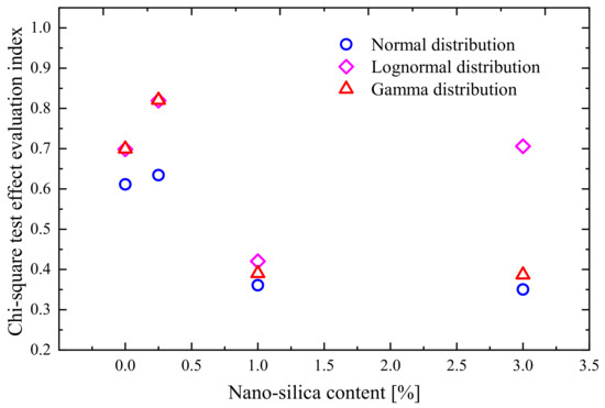 Based on the above analysis, we hypothesize that the probability distribution of the microstructure of NS-modified silty clay can be described by the four distribution functions. In this study, the hypothesis is assessed by the chi-square test as follows: