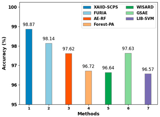 In Table 4 and Figure 9, comparative results of the XAIID-SCPS technique with existing models take place [27]. The results indicate that the XAIID-SCPS method shows maximum performance over other existing models. Based on , the XAIID-SCPS technique results in an increasing of 98.87% while the FURIA, AE-RF, Forest-PA, WIZARD, GSAE, and LIB-SVM models reach a reducing of 98.14%, 97.62%, 96.72%, 96.64%, 97.63%, and 96.57%, respectively.