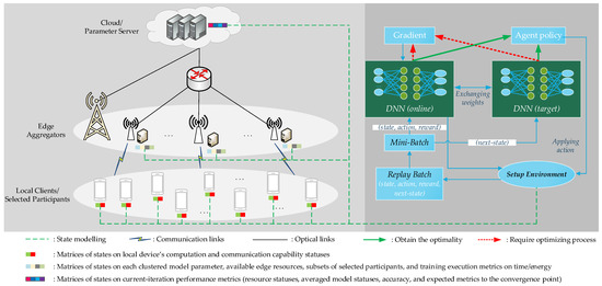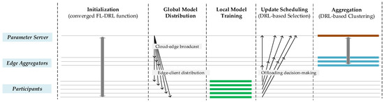 - The initialization function of FL can be converged with DRL as state features within the setup environment (e.g., capacities of edge aggregators);