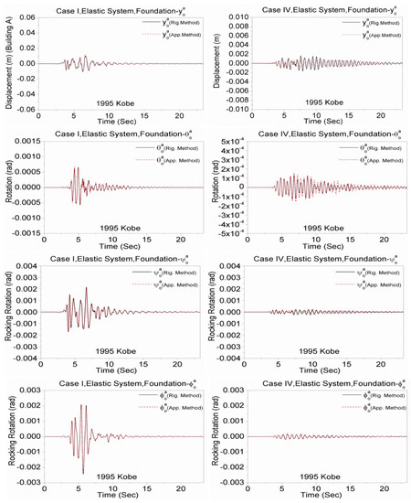 Time histories of Cases I and IV for the foundation during the 1995 Kobe earthquake.