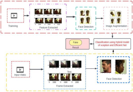 We divided this dataset into training, validation, and testing sets. This dataset contains both real and fake videos. Videos are converted into frames and frames having faces were selected to provide input to the model shown in Figure 6. After converting all the videos into frames and detecting faces from all the frames, we used 65,234 real images and 68,258 fake images for training our model. For validating, 5876 real images and 5698 fake images were used. Testing was performed on 9785 real images and 9542 fake images.