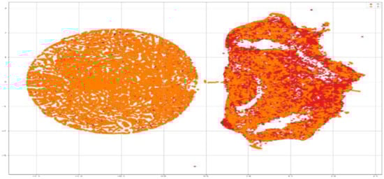 Figure 7 shows the visualization of our dataset by giving each data point (image) a location in a two-dimensional map. It shows the real and fake images. The value 0 is used for fake images and 1 is used to represent real images.