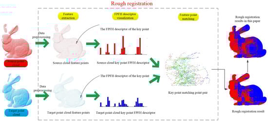 Point cloud coarse registration includes feature point extraction, filtering processing, feature matching, and the elimination of mismatched pairs. The process of rough registration is shown in Figure 1.