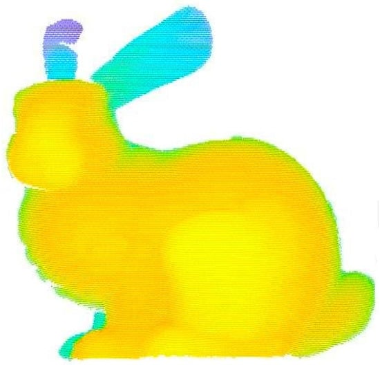 The experiment was divided into two parts. The coarse registration experiment analyzed the registration error of the selected data set, and the fine registration experiment verified the convergence speed of the proposed method. The selected point cloud data set comes from the Stanford 3D data set and a self-measured free-form surface data set. The self-measured point cloud data are shown in the following Figure 11.