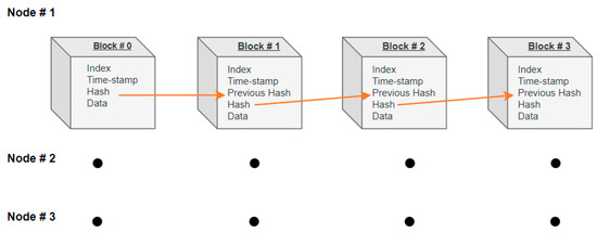 A blockchain, originally known as block chain, is a growing list of records called blocks. Blockchain consists of a sequence of blocks, and the latter block is linked to the previous one by including the cryptographic hash of the previous block. In addition, the block also contains Index, Time-stamp, Previous Hash, Hash, and Data [27]. All nodes sync using a gossip protocol, which is illustrated in Figure 5. When you change any of these data, you will change the entire block, and the subsequent blocks will notice that something has changed.