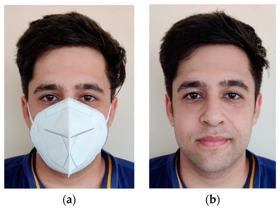 (a) Person’s Image with a mask; (b) Person’s image without a mask to highlight the challenges in identification.