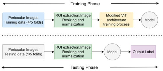 After the extraction of the ROI from the input image, the resultant region is subjected to following set of steps in order to develop the ViT model during the training phase. The trained model is stored in the system for testing purposes. During the testing phase, the model predicts labels. These predictions are utilized to compute accuracy, which determines the overall performance of the trained model.