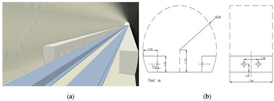 In this study, the overlapping mesh technique [20] was used to numerically simulate the relative motion between the tunnel and train. The size of the overlapping region was 43.48 h × 1.2 h × 1.2 h, consisting of the maglev train and track, and the stationary region consisted of the ground, tunnel, and external computational domain. The overlapping region moves along the tunnel at the operating speed of the train, and information is exchanged between the two via the overlapping grid exchange surface [16]. A two-lane tunnel with a cross-sectional area of 100 m2 and tunnel length of 96.62 h, which has been widely used in engineering, was selected and applied to the test with a 1:20 scaling ratio.