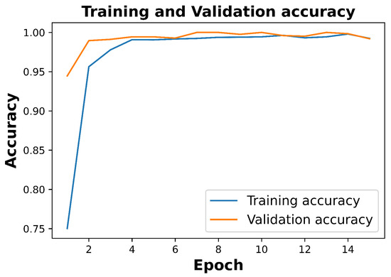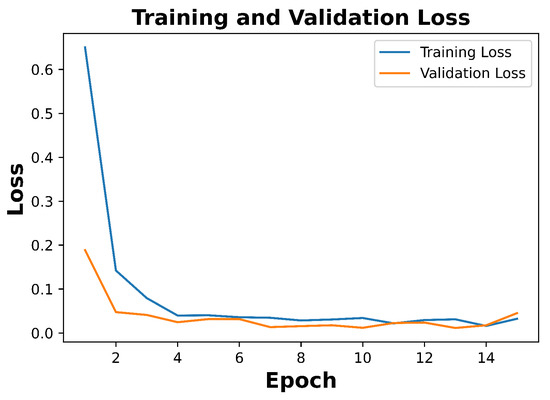 For 15 epochs, the callbacks were monitored for losses for 3 epochs. The 10-fold result of the model is shown in Table 7. The model achieved a 96.07 ± 0.34% training accuracy, a 0.1279 ± 0.03 training loss, a 94.20 ± 0.97% validation accuracy, a 0.2007 ± 0.03 validation loss, a 93.50 ± 1.39% test accuracy, and a 0.2160 ± 0.047 test loss.
