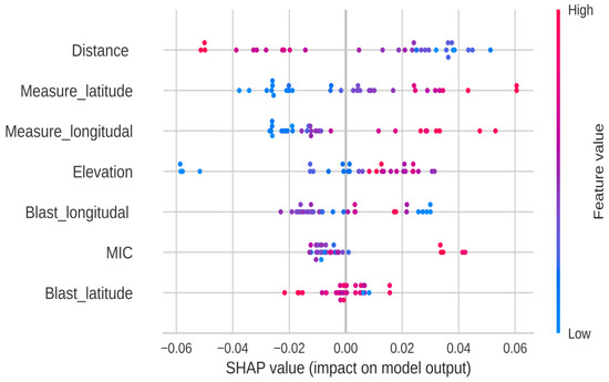 Figure 13 demonstrates the importance of the input parameters for the ground vibration. Based on the SHAP analysis, this study shows the distance have the higher future importance when compared to the other input parameters.