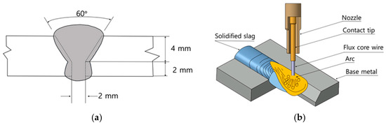 (a) Geometry of the Y-groove joint and (b) schematic diagram of the FCAW process.