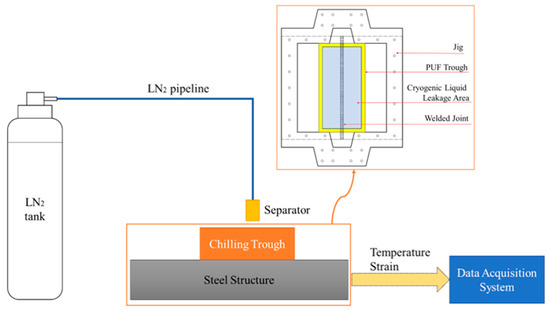 Schematic of the experimental setup of the cryogenic liquid leakage test.
