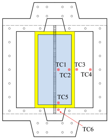 Figure 4 portrays the arrangement of thermocouples attached to the testing plate’s top surface. Similar to the strain gauges, three thermocouples (TC1, TC2, and TC5) belonged to the area that is directly affected by liquid nitrogen, whereas two thermocouples (TC4 and TC6) did not. In addition, the thermocouples TC1, TC5, and TC6 belonged to the HAZ area, and the thermocouples TC1, TC2, TC3, and TC4 attached to the welded plate’s middle cross-section.