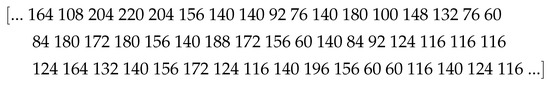 When looking at the data stream in Figure 3, the regularity, repetition, and redundancy stand out, i.e., all the phenomena that compression methods use to increase the compression ratio. The compression methods described and used in this article are: Huffman coding, arithmetic coding, range coding, and LZ coding family.