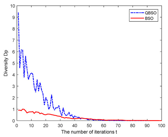 where is the mean value of individuals in the current generation. Considering that the BAS is a single individual search algorithm, it cannot constitute a population. Therefore, we chose the BSO algorithm as the diversity comparison algorithm.
