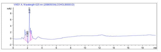 Chromatogram, HPLC, of a real Ouzo sample, to check the specificity of the method.