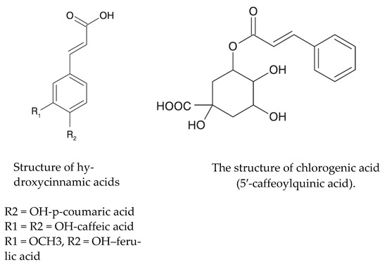 Structures of hydroxycinnamic acids and chlorogenic acid [6].