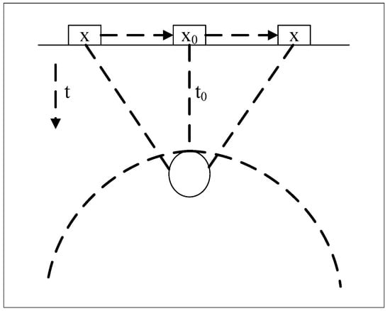 where x is the initial position when the GPR transmits electromagnetic waves, t is the start of propagation time, is the position when the transmitting antenna is perpendicular to the rebar, is the two-way propagation time to the rebar, v is the propagation speed of electromagnetic waves in the medium and r is the radius of the rebar.