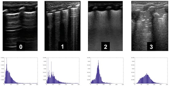Representative lung ultrasound images used for scoring and calculated histograms (source: [62]).