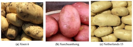The potatoes used in this experiment were the varieties under mass production in the current season in Hohhot, China. The varieties used in the factorial test were Xuechuanhong and Xisen 1, with about 100 in each variety, and the varieties used in the single factor test were Xisen 1, Xisen 6, Xuechuanhong, Netherlands 15 and Jizhang 12, with about 100 potatoes for each variety. Before the test, the potatoes were wiped with a wet cloth, and those with a non-damaged epidermis were selected for the experiment.