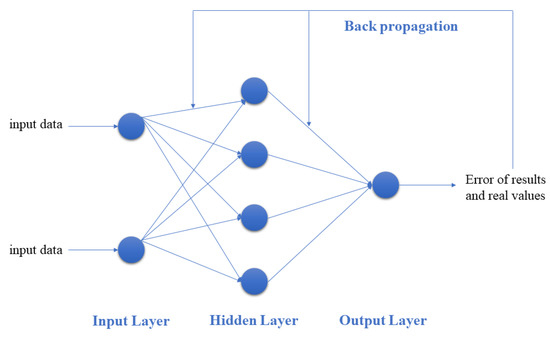As shown in Figure 2, BP neural networks are divided into three layers: input layer, hidden layer and output layer, among which multiple hidden layers can be placed in series. The weight and bias of the initial cell can be generated by a random seed. The input features are firstly propagated forward through the linear transformation of the hidden layer and activated by tanh and sigmoid activation functions. Then, the error between the output result and the real value (such as MSE) is calculated, and the gradient descent is used to update the weights and bias to complete a backward propagation. After n iterations of the forward and backward propagation process, the error can be reduced to a very small value, and the final parameters can predict the results well.