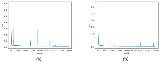 (a) Loss function change curve of three-layer stacked LSTM model. (b) Loss function change curve of two-layer stacked LSTM model.