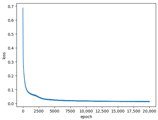 Therefore, we modified it. After processing with only one layer of LSTM and one layer of dropout, the loss function image behaved much more normally (as shown in Figure 9), and the test results were better than the complex model. It is speculated that the form of the data after standardization was too simple, leading the complex model to appear to have a serious shock peak, resulting in the reduced performance of the model; therefore, the simpler model was deemed more suitable for processing this kind of data.