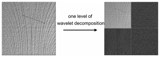 Wavelet analysis is the most powerful tool in the field of signal and information processing, which is widely used in signal filtering, image denoising, image fusion, image edge detection and so on [38]. In image processing, wavelet transform is usually used to divide the image into different frequency bands. The image to be analyzed can be observed from multiple scales. In large-scale space, only the general appearance of the image can be observed; in small-scale space, we can observe the details of the image. The multi-scale observation method can extract some features that are not easily observed in a single scale.
