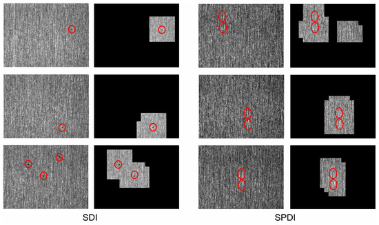 In this dataset, we still use the random-window method to create defective patches and non-defective patches. In our wavelet model, we extracted 885 defective patches (64 × 64 pixels) and 1146 non-defective patches (64 × 64 pixels) from SDI. As for SPDI, the number is 703 and 873. In the defect detection phase, here we set the sliding-window step size to 16 pixels, so each defect area will be extracted by at least 9 patches. For the defect threshold in SDI, when the number of defective patches in an area was more than 3, we judged that there were defects. Because the defect in SDPI is bigger than the SDI, we set the defect threshold to 4 in the SDPI.