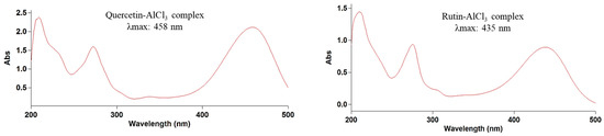 UV-Vis spectrum of quercetin and rutin standard solutions after complexing with AlCl3 reagent.