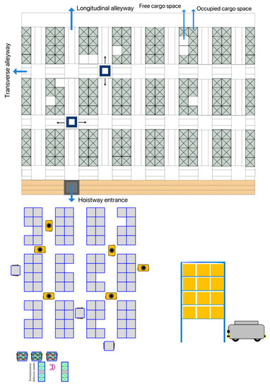 - Zou, B.; Xu, X.; Gong, Y.; De Koster, R. Modeling parallel movement of lifts and vehicles in tier-captive vehicle-based warehousing systems. Eur. J. Oper. Res. 2016, 254, 51–67. [Google Scholar] [CrossRef]