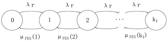 4.1.2. An Open-Loop Queueing Network Is Constructed to Calculate the Separation-Aggregation Queueing Network Model Metrics