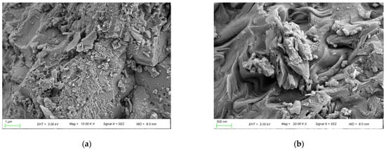 Take a trace solid sample and place it directly on the conductive glue. Then, using the Oxford Quorum SC7620 (Oxford, UK) sputtering coating apparatus, spray gold for 45 s at a 10 mA rate. Finally, use an SEM to photograph the sample’s morphology. During the topographical shooting, the acceleration voltage was 3 kV. The component is the SE2’s second electronic detector.