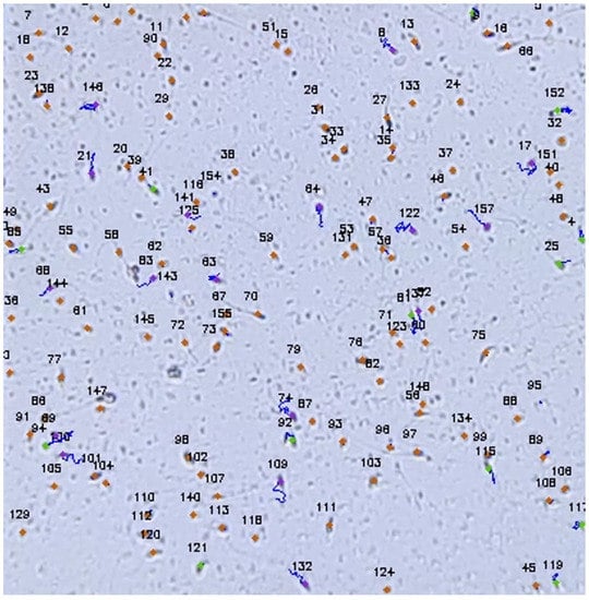 - Zhu, R.; Cui, Y.; Hou, E.; Huang, J. Efficient detection and robust tracking of spermatozoa in microscopic video. IET Image Process. 2021, 15, 3200–3210. [Google Scholar] [CrossRef]