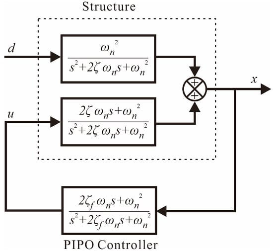 where , , and is the Laplace operator. The compensator given by Equation (5) will be referred to in this paper as the PIPO controller. Unlike the PPF controller, the output of the PIPO is the desired displacement of the actuator installed in series with the damper and the spring. The novelty of the proposed single-input and single-output (SISO) PIPO controller given by Equation (5) is that its form is very simple and can be easily implemented using analog circuits or digital controllers. Of course, a sensor capable of precisely measuring the displacement of the table and an actuator capable of accurately realizing the desired displacement are required. The smaller the damping factor of the compensator, the greater the damping effect, but the narrower the controllable frequency band.