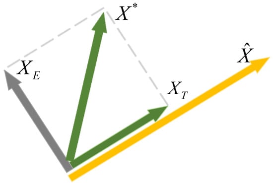 In this paper, the signal-to-distortion Ratio (SDR) is used to evaluate the voice filter model. SDR is commonly used to evaluate signal separation systems [] and is calculated as the sound intensity ratio in decibels (dB), which determines the error between the projection of the resulting audio and the energy of the clean audio. As shown in Figure 5, the more parallel the two sound vectors are (the more similar the sound is), the higher the signal distortion rate is; unlike the signal-to-noise ratio (SNR), which is not affected by the sound size.