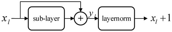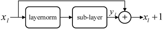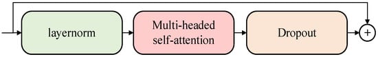 Multi-head self-attention is the key structure in the transformer, and is a variation of self-attention. It is similar to an RNN, but it can input and output a whole set of data at the same time. Figure 9 shows the structure of the multi-head self-attention module, which uses the relative positional embedding and incorporates the pre-norm residual units with dropout (see Figure 10). Consequently, the convolution and feed-forward modules are also designed using the same structure. The transformer is unable to learn information on the sequence of the positions, so the developers of the transformer proposed to use position embedding for the multi-head self-attention to gain position information. Relative position coding provides better generalization over different input lengths and better robustness to variable speech lengths.