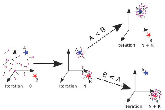 Evolutionary systems [26,27] work based on the Darwinian theory of the mechanism of natural selection through which evolution occurs, given that all life forms come from common ancestors and have been shaped over time. The application techniques of the mechanisms they use are inspired by the biological evolution of species, such as reproduction, mutation, recombination, natural selection and ultimately, survival of the fittest. Technically, they belong to the family of systems that operate with trial and error and can be considered stochastic optimization methods. This characteristic of these systems sets them apart. It makes them preferable to other classical optimization methods because they have little or no knowledge of the problem or function they are asked to solve [28,29,30]. The solution methods are not dependent or based on complex calculated parameters. These systems can evolve and adapt in a manner analogous to that of the organization they imitate, which is an optimal solution in cases of dynamic and rapidly changing environments [26,31].