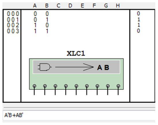 After the conversion of the truth table, the logical expression was then output using Multisim’s logic conversion module, as shown in Figure 5. As the logical expression can organize and classify all grounding states, it is easier to identify than the truth table, and it can reflect the mapping relationship between the shield grounding state and shielding effect, which is more convenient for summarizing the law and has better guidance for subsequent shield grounding optimization. Firstly, the voltage level () is determined, all the input states with are found, and the logical expression between the input and output is written in the form of the simplest and–or expression for all voltage levels. Taking Table 4 as an example, the final logical expression could be obtained as Equation (1):