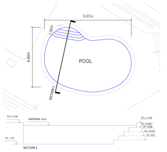 Figure 3 denotes the pool measurements and the finished floor levels (FFLs) for each pool step used as a reference in the error calculations.