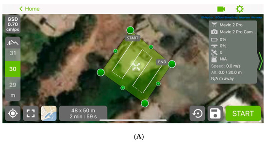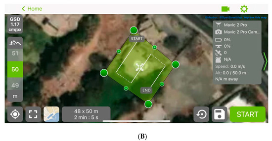 (A) Flight plan at 30 m. (B) Flight plan at 50 m.