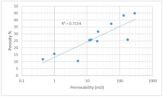 Scatter plot of permeability and porosity.